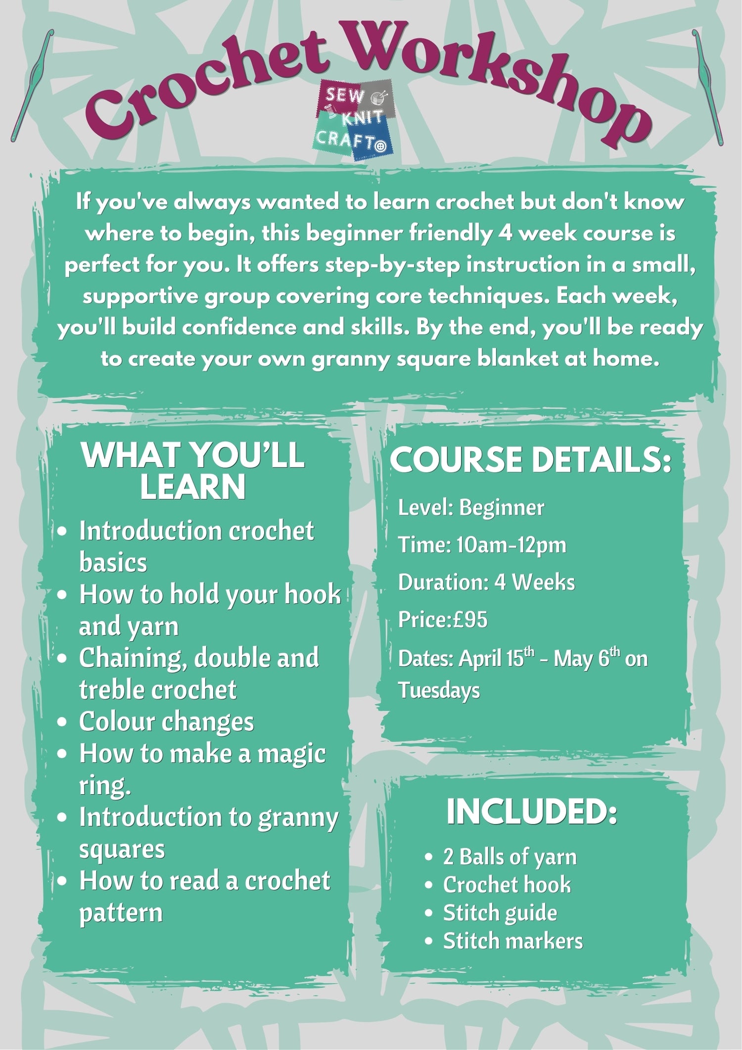 Want to learn to crochet? Our beginner course is what you need!